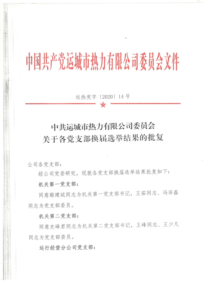關(guān)于各黨支部換屆選舉結(jié)果的批復(fù)