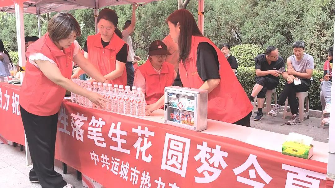 6月7日清晨7時,天光微亮,公司黨員志愿者們已在康杰中學(xué)考點周邊搭建起“熱力愛心服務(wù)站”的紅色帳篷。帳篷上“運城熱力祝所有考生落筆生花 圓夢今夏”的標語格外醒目,與黨員們身上的紅色志愿服務(wù)馬甲相互輝映,成為考場外一道溫暖的風(fēng)景線,F(xiàn)場精心設(shè)置“物資保障區(qū)”“家長休息區(qū)”,準備了1500瓶礦泉水、20套板凳以及防暑藥品,每一處細節(jié)都承載著對考生和家長的深切關(guān)懷。