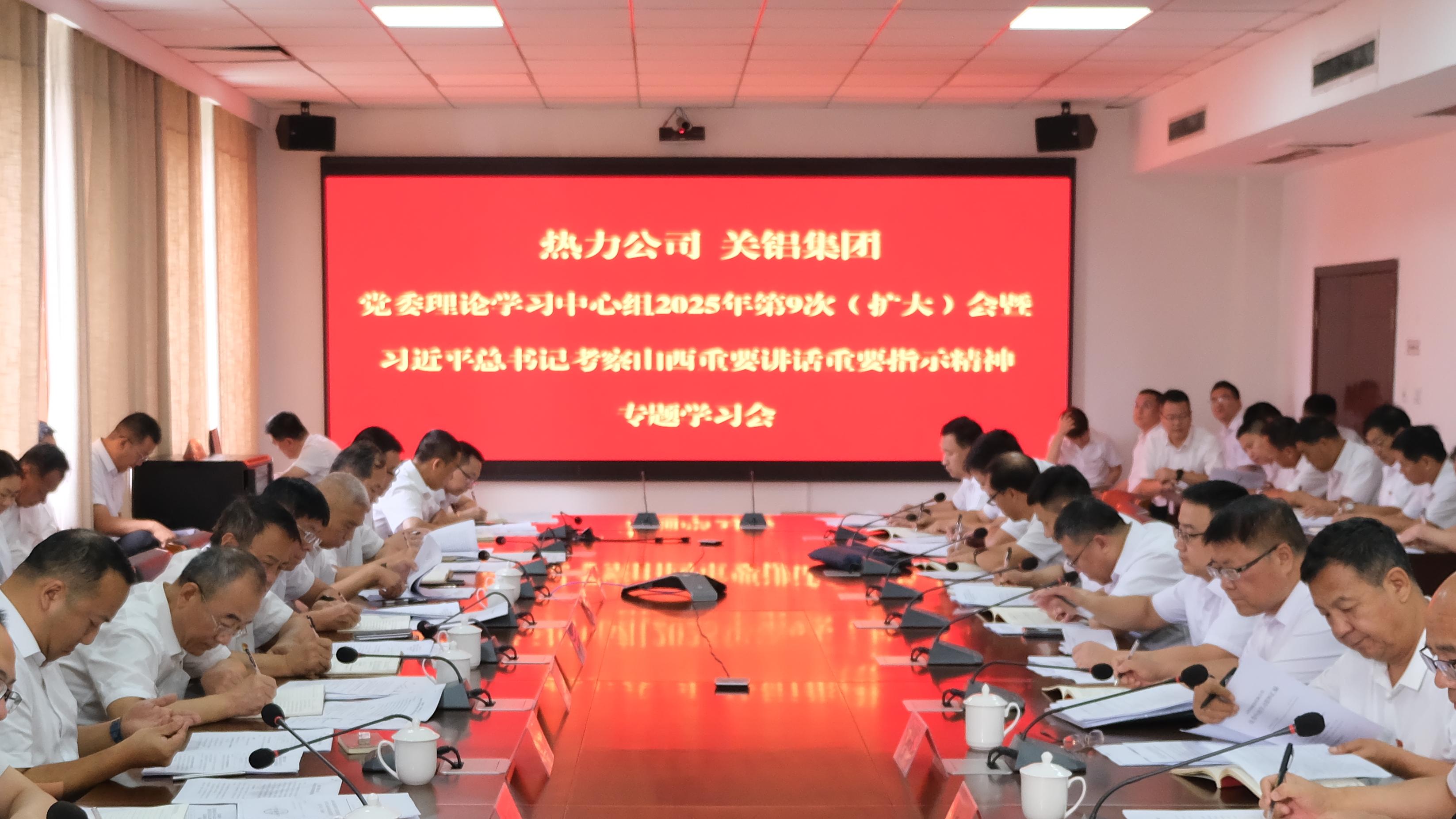 近期,公司黨委聯(lián)合關(guān)鋁集團(tuán)召開(kāi)黨委理論學(xué)習(xí)中心組2025年第9次(擴(kuò)大)會(huì)暨習(xí)近平總書(shū)記考察山西重要講話重要指示精神專題學(xué)習(xí)會(huì)。黨委書(shū)記、董事長(zhǎng)杜偉師主持會(huì)議并講話。關(guān)鋁集團(tuán)、熱力公司領(lǐng)導(dǎo)班子成員、各黨支部書(shū)記、中層正職及部門負(fù)責(zé)人參加會(huì)議。