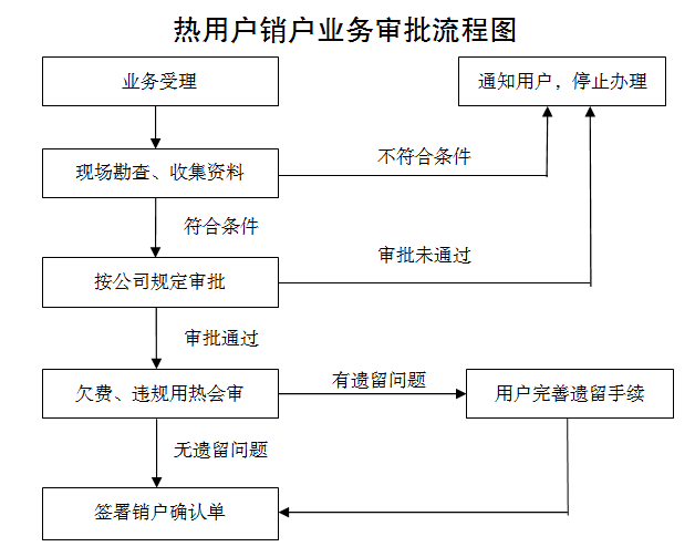 (四)審批未通過的用戶通知其停止辦理;審批通過的用戶傳單對其是否有欠費或違規(guī)用熱行為進行會審。