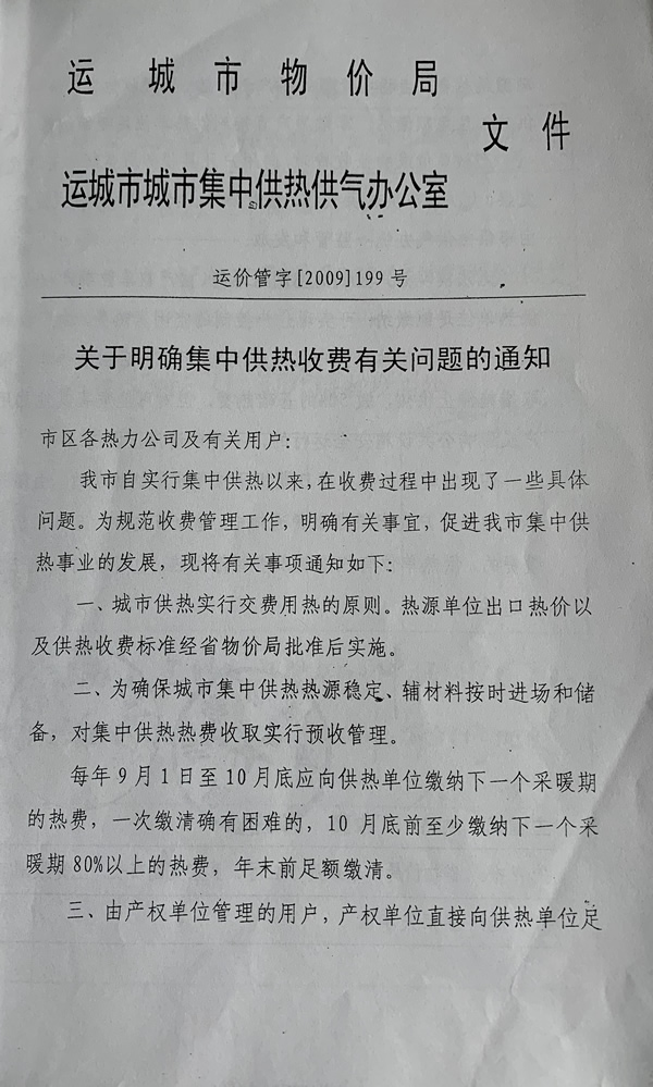關(guān)于明確集中供熱收費有關(guān)問題的通知