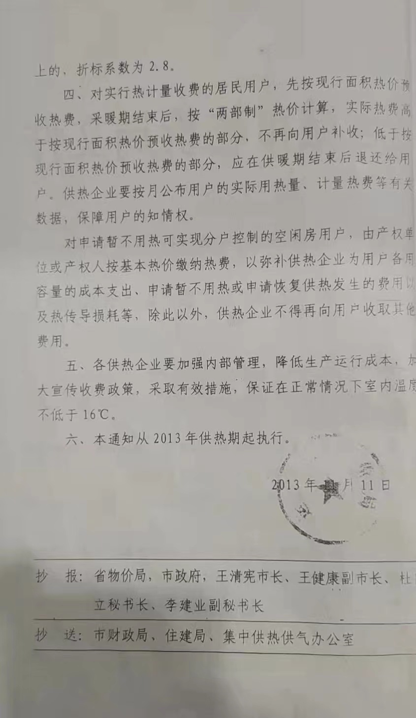 關(guān)于運(yùn)城市區(qū)熱電聯(lián)產(chǎn)集中供熱價(jià)格的補(bǔ)充通知